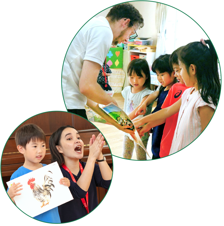 4・5歳児の希望者を対象に、金曜日保育終了後、経験豊かなホームティーチャーが担当する「ECCジュニア課外教室」を開催しています。子どもたちが楽しく学べるECCオリジナル教材でハイクオリティな英語レッスンを実施しています。(別途費用がかかります。)